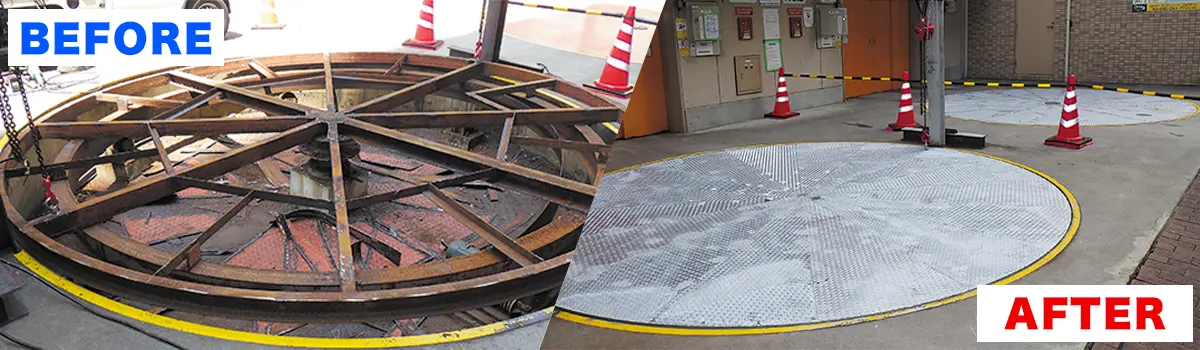 ターンテーブル天板の腐食が進むとお車のタイヤにダメージを与える危険がございます。