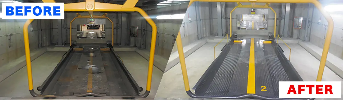 機械式駐車装置の入替え時期は30 ~ 35 年ほどといわれており、装置すべてを解体撤去し、現行の装置に入替えを行うことが推奨されています。
